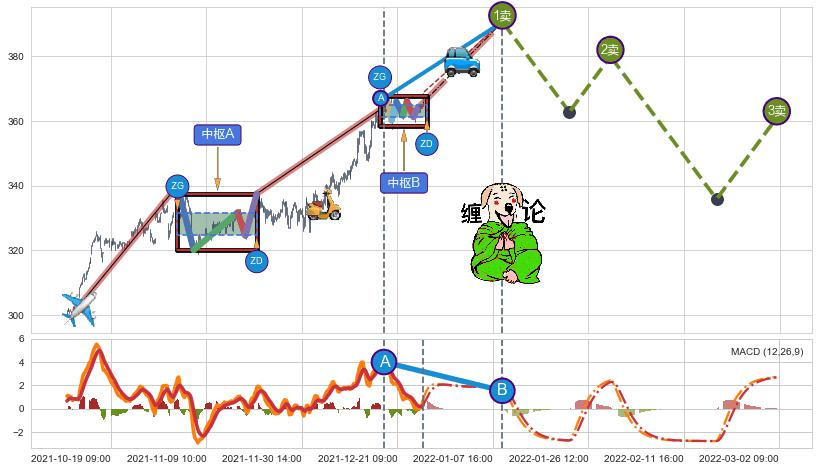➢ 缠论价格❶卖比A点高 ⤴,【MACD】指标B点比A点低 ⤵️