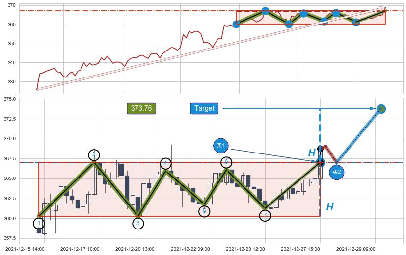 ➢ 【买1】: 激进型 买点 →(12-27:15: 367.01 )形成突破上涨矩形整理【整理】形态