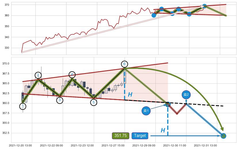 ➣ 最小中继整理涨幅→𝐇: 6.75 (上平行阻力线与下平行支撑线的垂直距离)