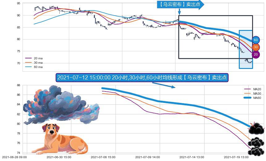 ⚀ 2021-07-06 09:00:00小时-2021-07-19 15:00:00小时显现 20小时-30小时-60小时均线 【乌云密布】卖出点 看空信号,后市看跌,卖出