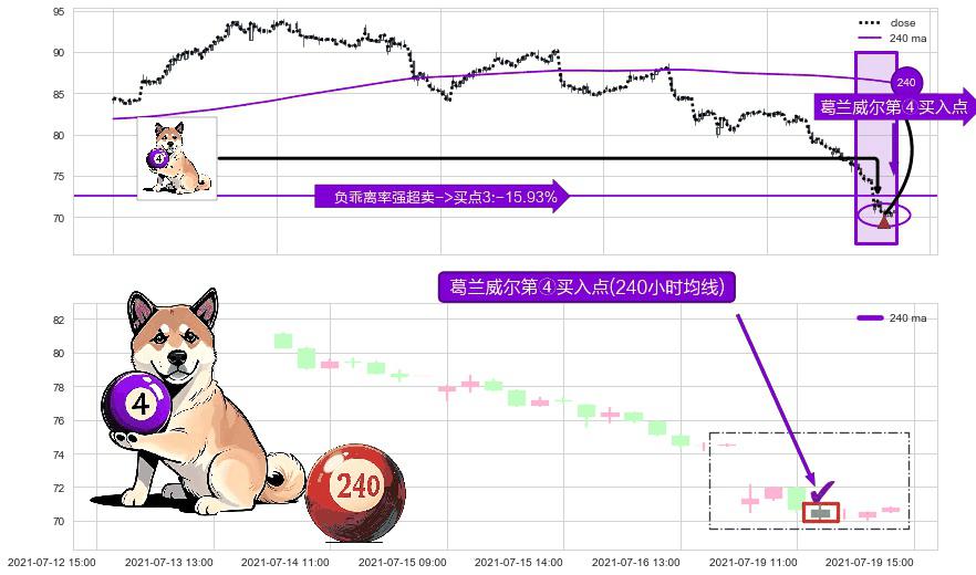 ⚀ 2021-07-19 12:00:00-小时显现 葛兰威尔均线 240小时均线 第④买入点 下降趋势均值回复的短线反弹信号,后市看涨,买进信号
