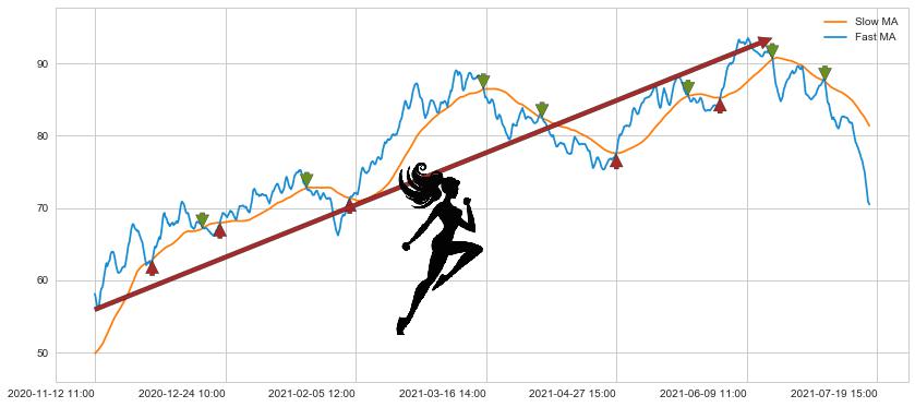 11-12 11:00至06-16 15:00 慢线与快线呈多头排列, 慢线与快线接触少,无缠绕