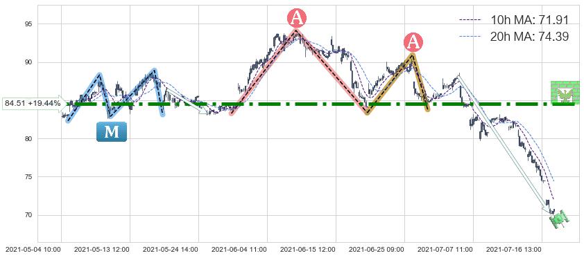 2021-06-29: 第一阻力位84.51有效抑制了下跌浪,成功阻止了价格的继续下跌。