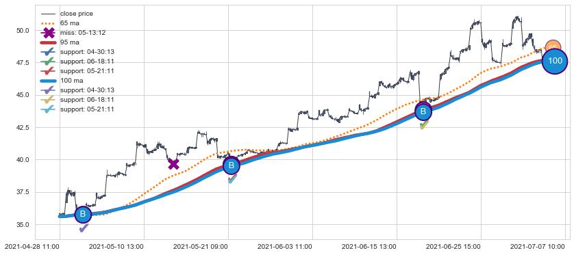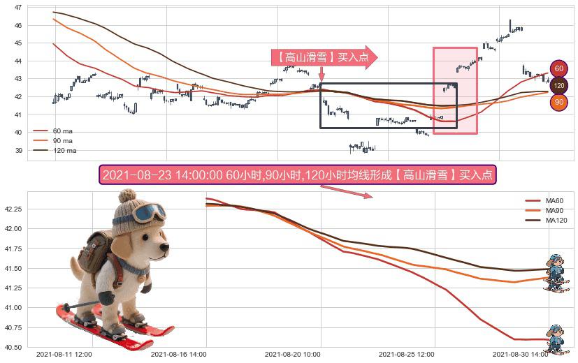 ⚀ 2021-08-16 14:00:00小时-2021-08-30 14:00:00小时显现 60小时-90小时-120小时均线 【高山滑雪】买入点 看多信号,后市看涨,买入