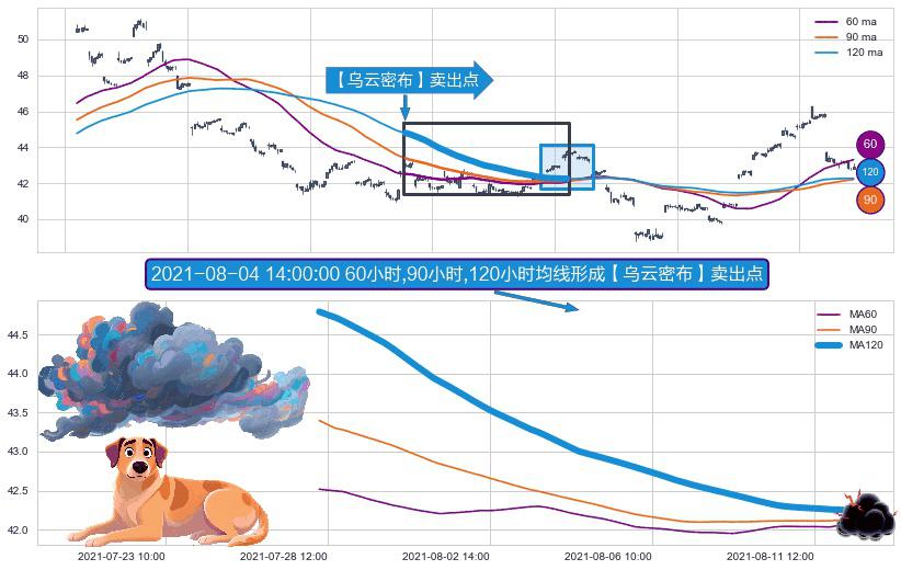 ⚀ 2021-07-28 11:00:00小时-2021-08-12 11:00:00小时显现 60小时-90小时-120小时均线 【乌云密布】卖出点 看空信号,后市看跌,卖出