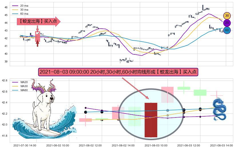 ⚀ 2021-08-03 09:00:00小时显现 20小时-30小时-60小时均线 【蛟龙出海】买入点 看多信号,后市看涨,买入