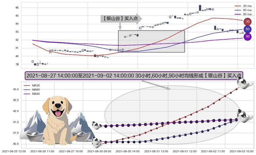⚀ 2021-08-30 09:00:00-小时至2021-09-02 14:00:00-小时显现 30小时-60小时-90小时均线 【银山谷】买入点 看多信号,后市看涨,买入