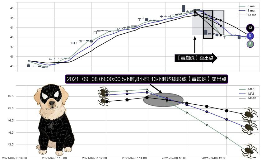 ⚀ 2021-09-08 09:00:00小时显现 5小时-8小时-13小时均线 【毒蜘蛛】卖出点 看空信号,后市看跌,卖出