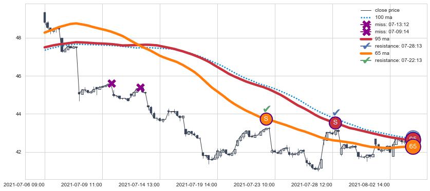 ⚁ MA60和MA90走势平行,且始终保持在短距离内,MA120始终在短中期均线上方,与短中期均线保持一定的距离,微微下行