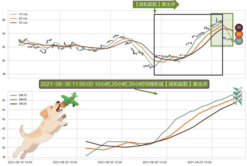 ⚀ 2021-08-20 14:00:00小时-2021-09-07 14:00:00小时显现 10小时-20小时-30小时均线 【战机起航】卖出点 看空信号,后市看跌,卖出