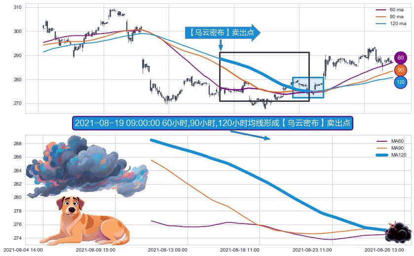 ⚀ 2021-08-11 12:00:00小时-2021-08-26 10:00:00小时显现 60小时-90小时-120小时均线 【乌云密布】卖出点 看空信号,后市看跌,卖出