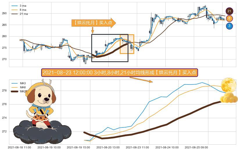 ⚀ 2021-08-19 14:00:00小时-2021-08-25 12:00:00小时显现 3小时-8小时-21小时均线 【烘云托月】买入点 看多信号,后市看涨,买入