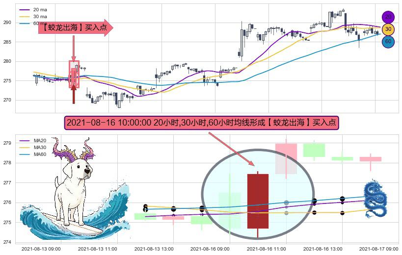 ⚀ 2021-08-16 10:00:00小时显现 20小时-30小时-60小时均线 【蛟龙出海】买入点 看多信号,后市看涨,买入