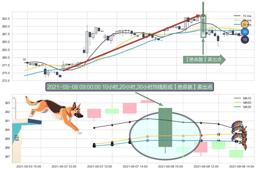 ⚀ 2021-09-08 09:00:00小时显现 10小时-20小时-30小时均线 【绝命跳】卖出点 看空信号,后市看跌,卖出