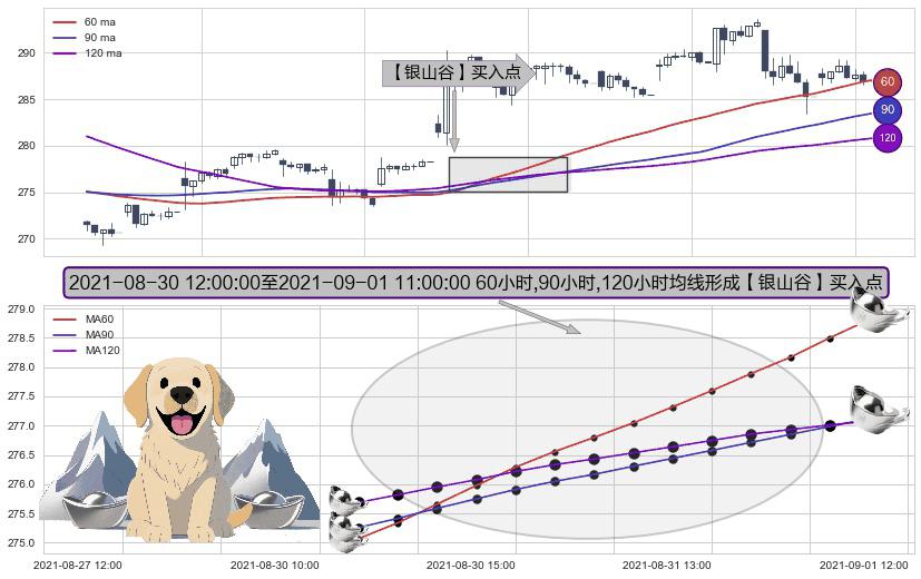 ⚀ 2021-08-30 13:00:00-小时至2021-09-01 11:00:00-小时显现 60小时-90小时-120小时均线 【银山谷】买入点 看多信号,后市看涨,买入