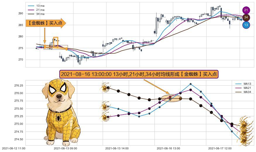 ⚀ 2021-08-16 13:00:00小时显现 13小时-21小时-34小时均线 【金蜘蛛】买入点 看多信号,后市看涨,买入