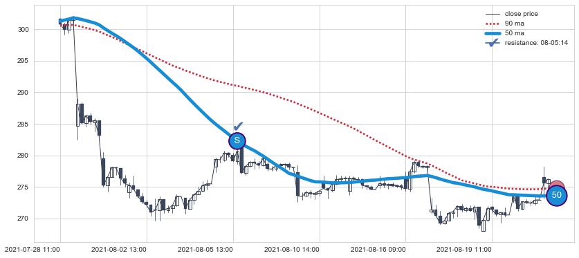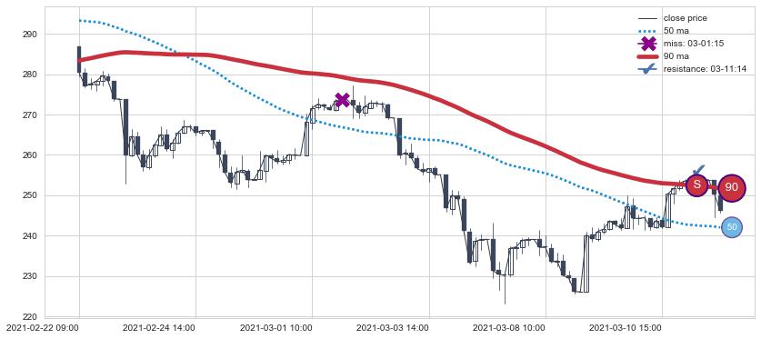 ⚁ MA60和MA90走势平行,且始终保持在短距离内,MA120始终在短中期均线上方,与短中期均线保持一定的距离,微微下行