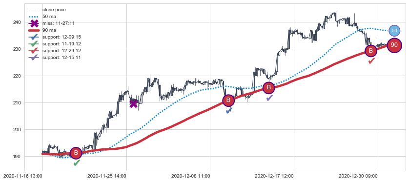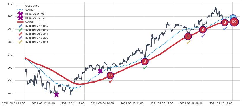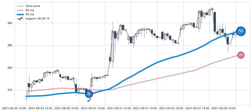 ⚄ 价格在均线获取支撑后再次向上反弹了【较短】距离, 第②买入点 支撑效果【仍需验证】