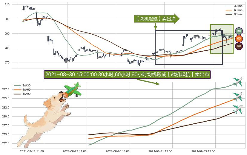 ⚀ 2021-08-23 12:00:00小时-2021-09-08 09:00:00小时显现 30小时-60小时-90小时均线 【战机起航】卖出点 看空信号,后市看跌,卖出