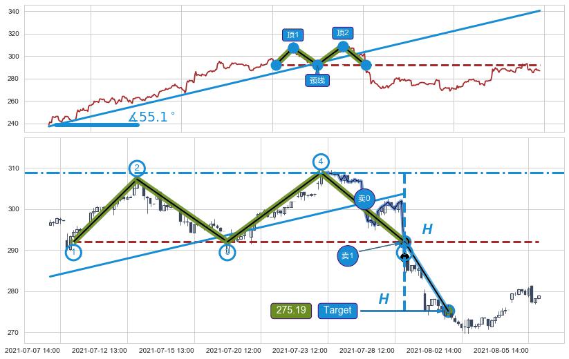 ➢ 【卖1】: 激进型 卖点→(07-29:09: 292.02 )形成突破双重顶【反转】形态