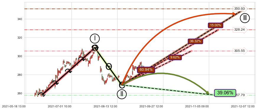 ➢ 循环浪继续向上【最低】位置(10-21:11, 305.55),匹配聚类样本比例15.78%, 可能性概率9.62%
