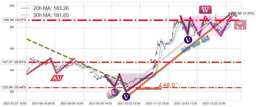 ♘ 支撑价格位186.46,可信任强度88.54%,距离最后交易2021-12-27 16:00形成的收盘价格186.33相差 +0.07%