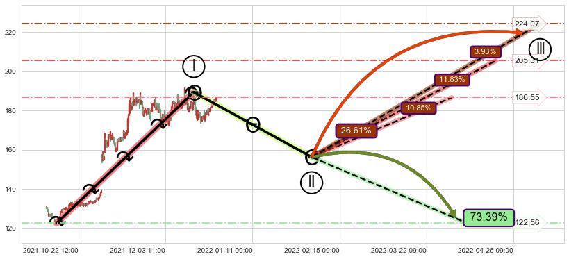 ➢ 循环浪继续向上【最高】位置(05-05:13, 224.07),匹配聚类样本比例14.78%, 可能性概率3.93%