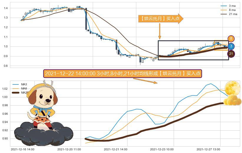 ⚀ 2021-12-20 12:00:00小时-2021-12-27 15:00:00小时显现 3小时-8小时-21小时均线 【烘云托月】买入点 看多信号,后市看涨,买入