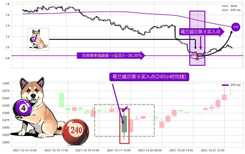 ⚀ 2021-12-17 09:00:00-小时显现 葛兰威尔均线 240小时均线 第④买入点 下降趋势均值回复的短线反弹信号,后市看涨,买进信号