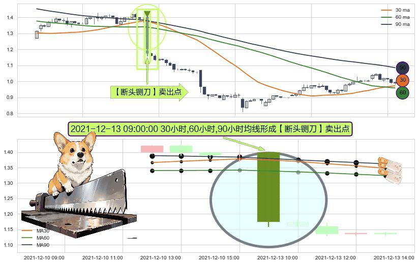 ⚀ 2021-12-13 09:00:00小时显现 30小时-60小时-90小时均线 【断头铡刀】卖出点 看空信号,后市看跌,卖出
