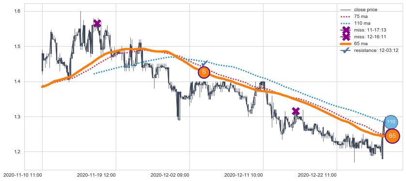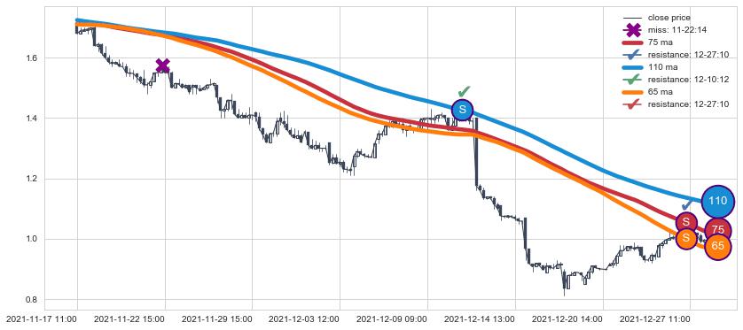 ⚂ 2021-12-09 12:00:00-小时均线向上突破,2021-12-13 09:00:00-小时重新下穿均线破位,均线阻力再次生效
