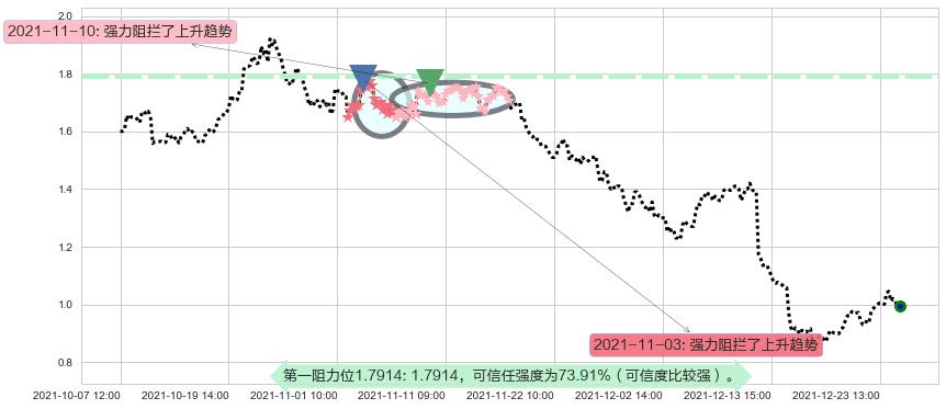2021-11-10: 第一阻力位1.7914强力阻拦了上升趋势,成功阻止了价格的继续上涨。