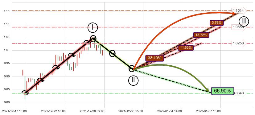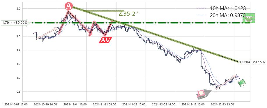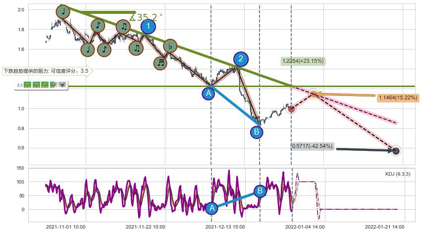 ➣ 预测:2022-01-21 14:00,【继续下探】稳定目前下跌趋势的前提下,预测价格:0.5717