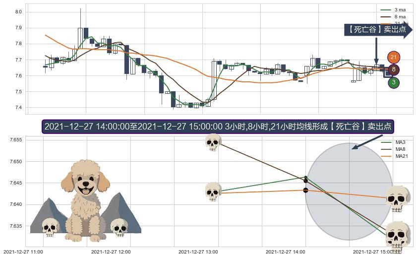 ⚀ 2021-12-27 15:00:00-小时至2021-12-27 15:00:00-小时显现 3小时-8小时-21小时均线 【死亡谷】卖出点 看空信号,后市看跌,卖出