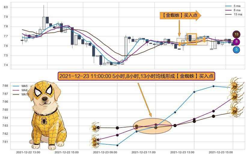 ⚀ 2021-12-23 11:00:00小时显现 5小时-8小时-13小时均线 【金蜘蛛】买入点 看多信号,后市看涨,买入