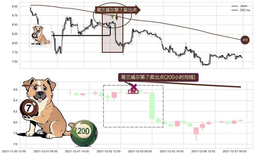 ⚀ 2021-12-02 14:00:00-小时显现 葛兰威尔均线 200小时均线 第⑦卖出点 下降趋势的中继信号,后市看跌,卖出信号