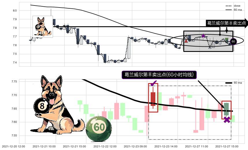 ⚀ 2021-12-27 14:00:00-小时显现 葛兰威尔均线 60小时均线 第⑧卖出点 下降趋势的中继信号,后市看跌,卖出信号