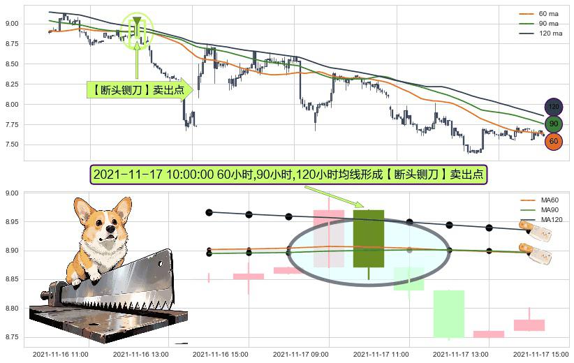 ⚀ 2021-11-17 10:00:00小时显现 60小时-90小时-120小时均线 【断头铡刀】卖出点 看空信号,后市看跌,卖出