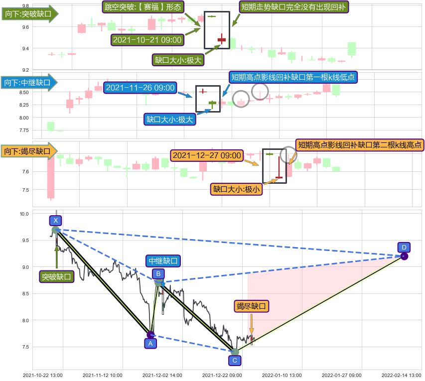 ➢ 2021-12-27 09:00形成:向下跳空【竭尽】缺口