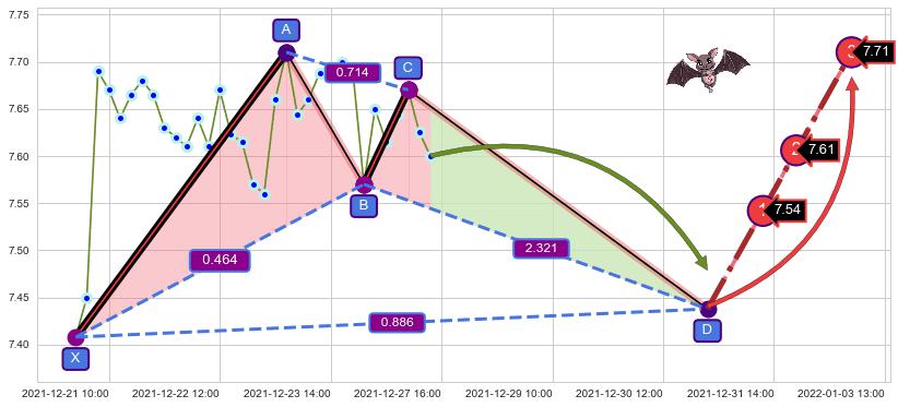 ➣ 未完成【蝙蝠】形态起点X: 12-20:14, 已到达C点: 12-27:13, 预测最终D点: 12-30:16, 共58交易小时