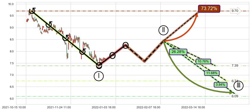 ➢ 循环浪继续向下【最高】位置(03-22:14, 7.39),匹配聚类样本比例40.95%, 可能性概率10.76%