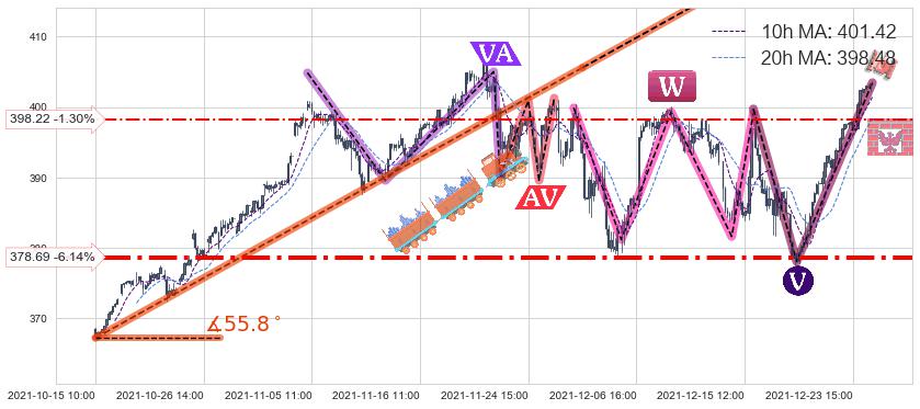 ♘ 支撑价格位378.69,可信任强度72.31%,距离最后交易2021-12-27 16:00形成的收盘价格403.48相差 -6.14%