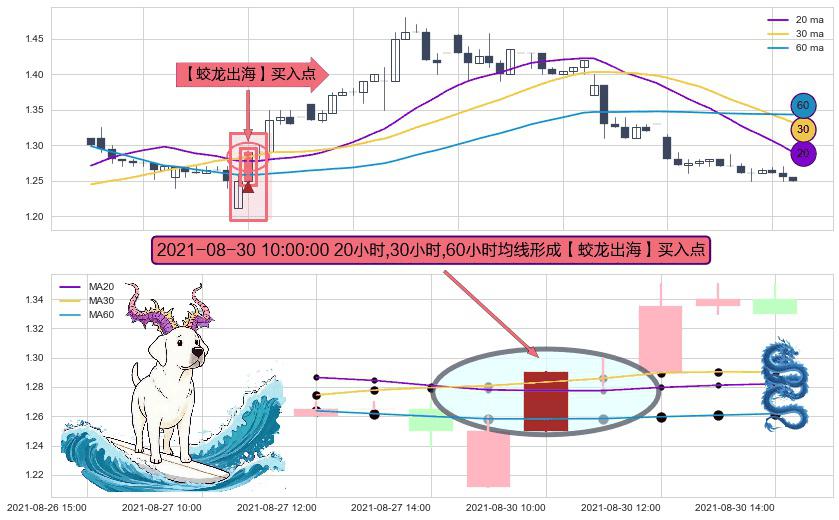 形态多维评估: ⚀ 2021-08-30 10:00:00小时显现 20小时-30小时-60小时均线 【蛟龙出海】买入点 看多信号,后市看涨,买入