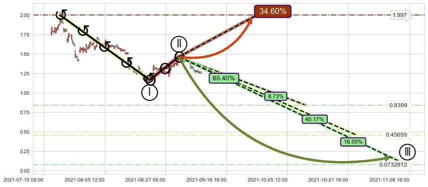 ➢ 循环浪继续向下【最低】位置(11-08:16, 0.0732812),匹配聚类样本比例25.23%, 可能性概率16.50%