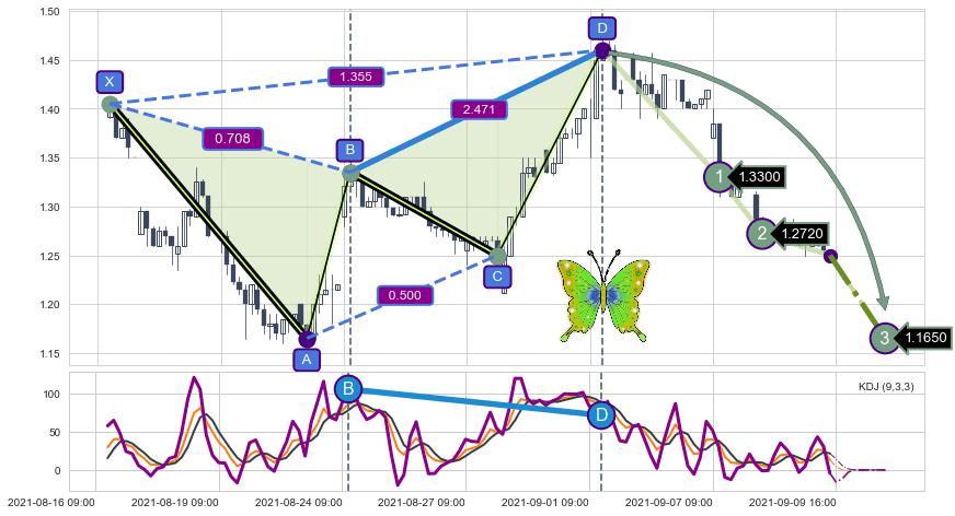 ➣ 已完成【蝴蝶】形态起点X: 08-16:11, 终点D: 09-01:11, 共81交易小时