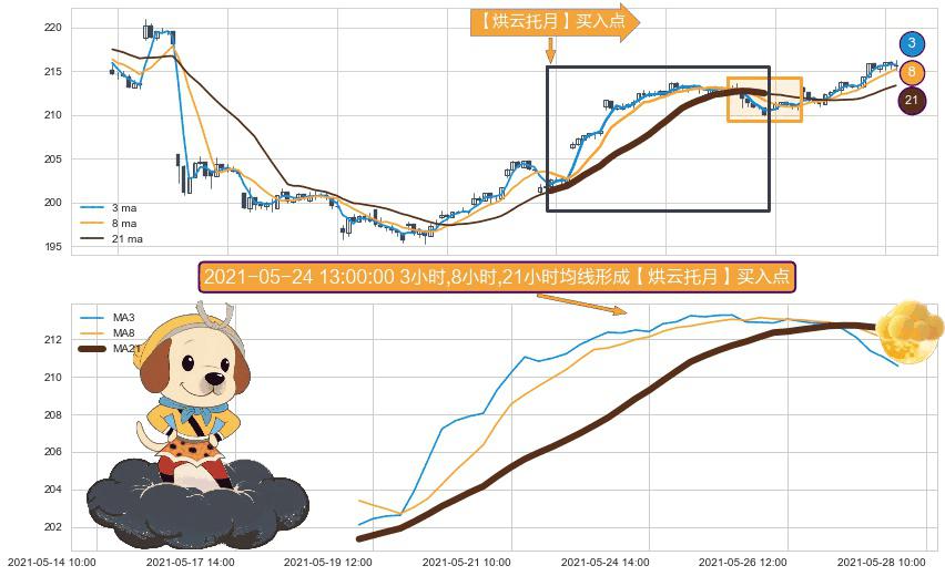 ⚀ 2021-05-19 11:00:00小时-2021-05-27 14:00:00小时显现 3小时-8小时-21小时均线 【烘云托月】买入点 看多信号,后市看涨,买入