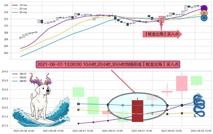 ⚀ 2021-06-01 13:00:00小时显现 10小时-20小时-30小时均线 【蛟龙出海】买入点 看多信号,后市看涨,买入