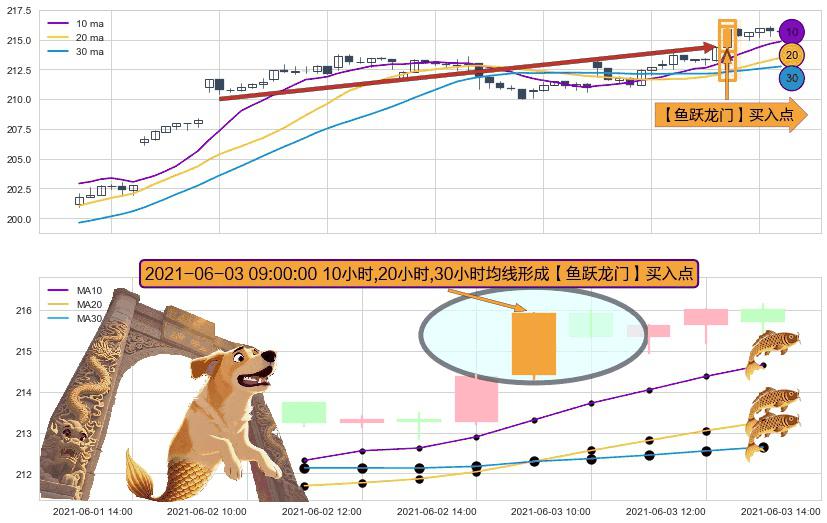 ⚀ 2021-06-03 09:00:00小时显现 10小时-20小时-30小时均线 【鱼跃龙门】买入点 看多信号,后市看涨,买入