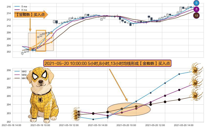 ⚀ 2021-05-20 10:00:00小时显现 5小时-8小时-13小时均线 【金蜘蛛】买入点 看多信号,后市看涨,买入