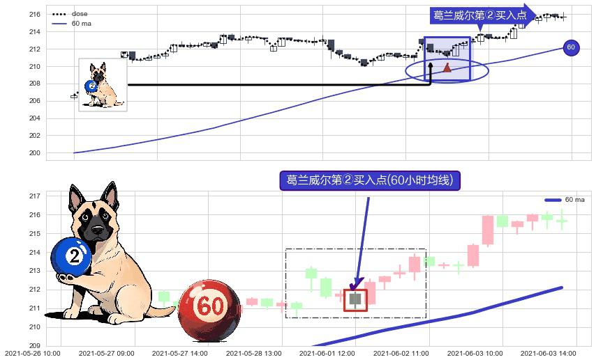 ⚀ 2021-06-01 12:00:00-小时显现 葛兰威尔均线 60小时均线 第②买入点 上升趋势的中继信号,后市看涨,买进信号